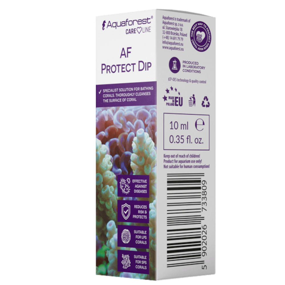 Safeguard your corals against disease with AF Protect Dip, a disinfecting solution designed for safe coral bathing. It thoroughly cleans the coral’s surface and helps reduce the risk of common diseases such as tissue necrosis, coral bleaching, mycosis, AEFW, or Brown Jelly Syndrome.