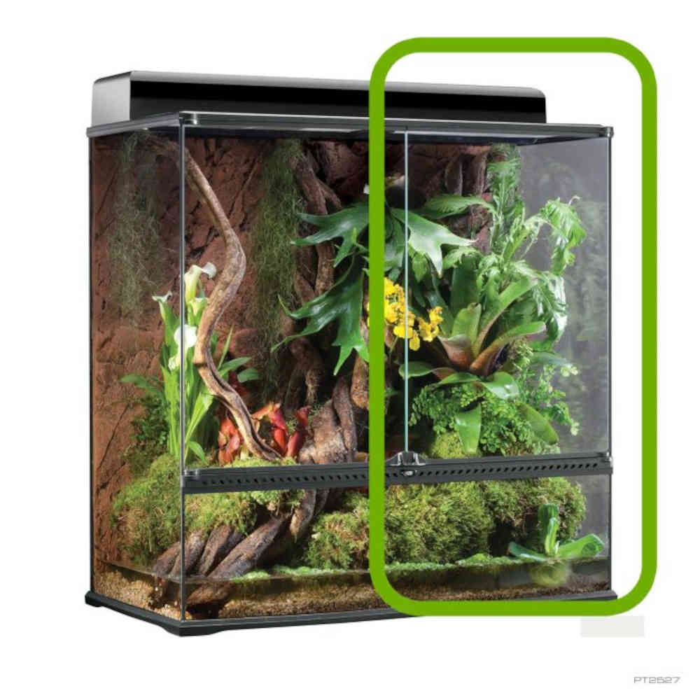 The Exo Terra Large Extra Tall All Glass Terrarium is designed to provide an ideal environment for reptiles and amphibians. Its sturdy construction and extra-tall design make it especially suitable for arboreal species, offering ample vertical space for climbing and natural behaviors.