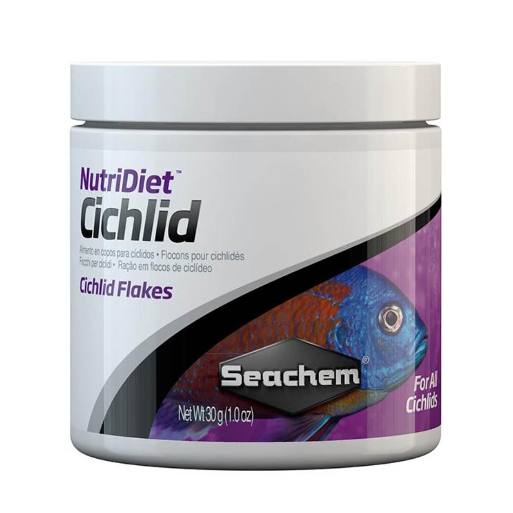 Seachem NutriDiet Cichlid Flakes with Probiotics are a premium, hormone-free daily diet formulated to provide complete and balanced nutrition for all cichlid species. Made with high-quality ingredients, this flake food supports healthy growth, vibrant coloration, and overall fish vitality. Enriched with beneficial probiotics, the formula promotes improved digestion and nutrient absorption while helping reduce waste in the aquarium. It is suitable for both African and South American cichlids, ensuring optimal health and enhanced natural coloration.
